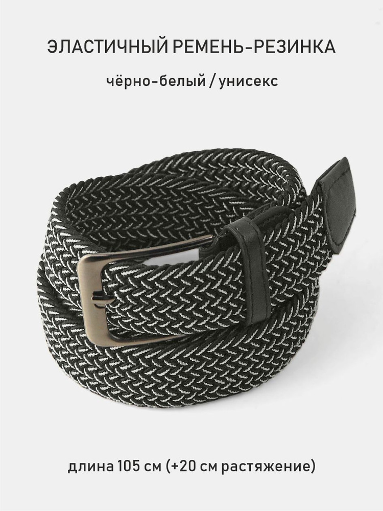 Ремень-резинка плетёный, чёрно-белый