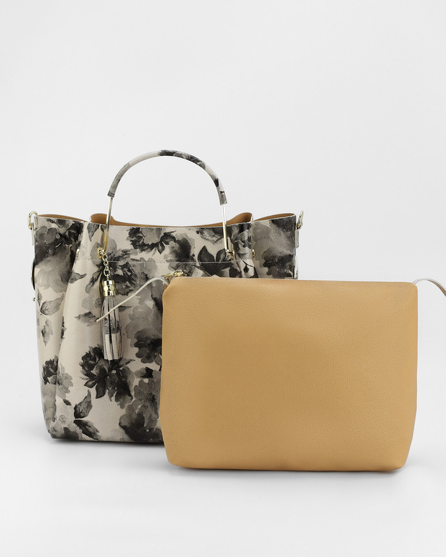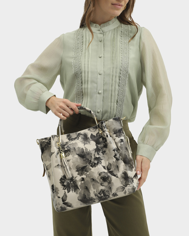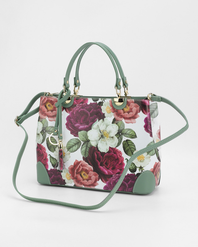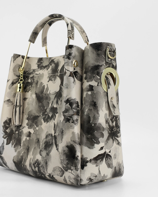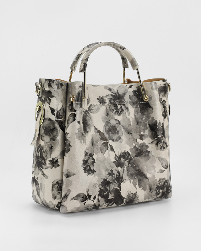 Кожаная сумка с цветочным принтом, оригинальными ручками и съемным