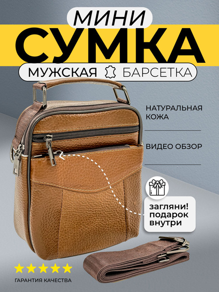 Кожаная сумка на плечо. Барсетка из кожи через плечо с плечевым ремнем