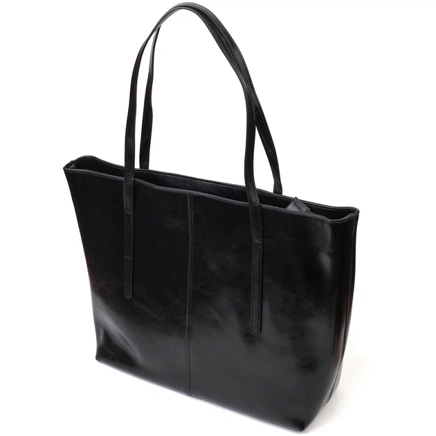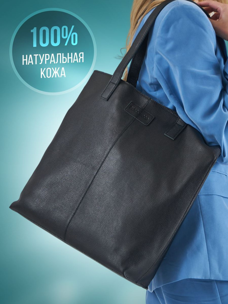 Сумка пакет шоппер из натуральной кожи черная на плече в интернет
