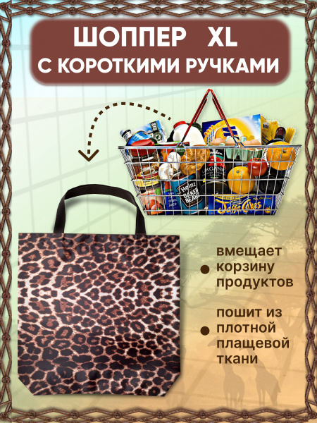 Сумка шоппер XL из плащевой ткани с леопардовым принтом, короткие ручки