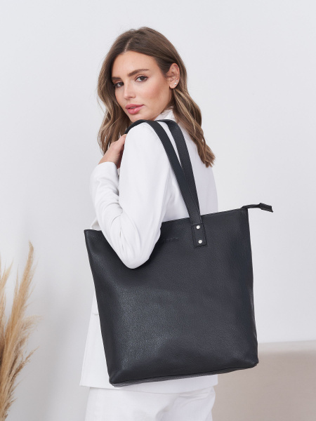 Сумка-шоппер женская черная из экокожи Jils. Сумка женская через плечо