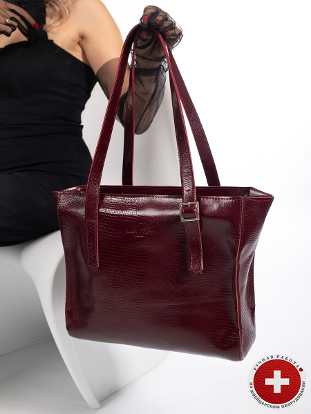 Сумка Шоппер из натуральной кожи с ручками через плечо цвет бордовый