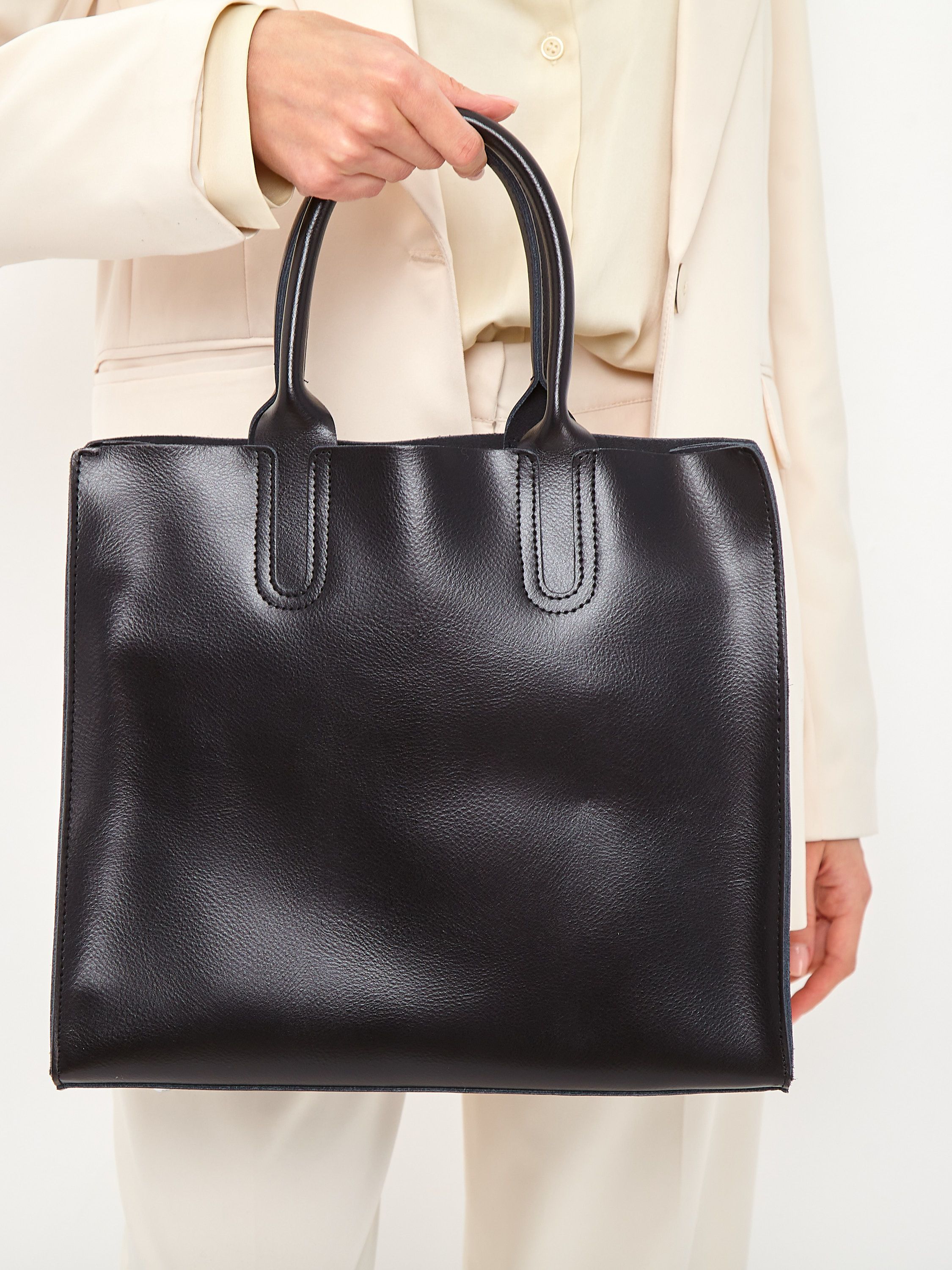 сумка женская натуральная кожа черная шоппер с ручками на плечо кожаная