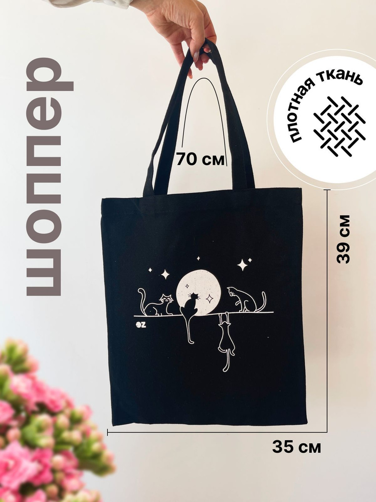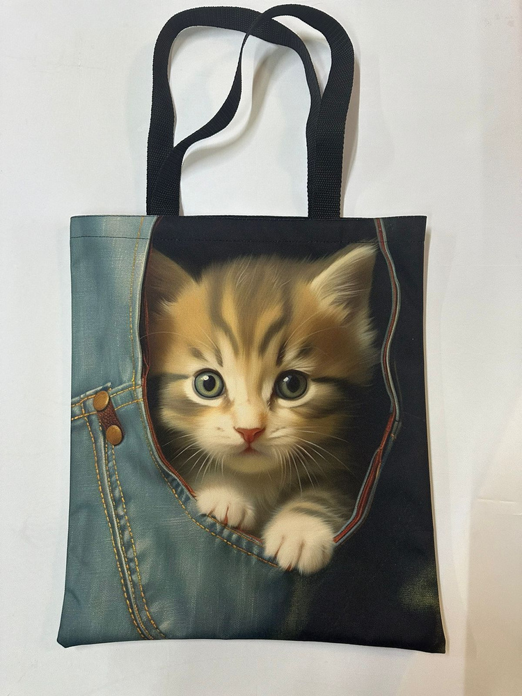 Сумка шоппер с принтом "Кот в кармане" / сумка хозяйственная / авоська