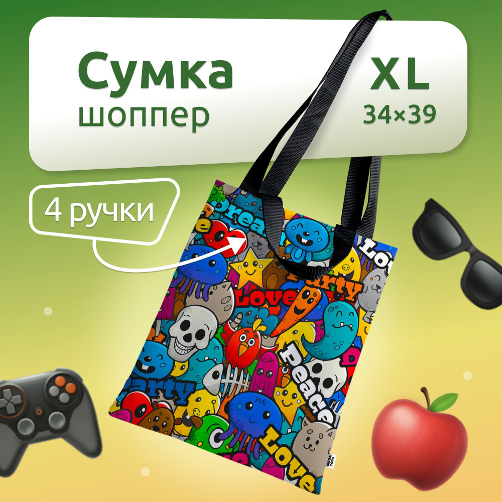 Сумка шоппер MEGA TOYS/ шоперы с принтом, разноцветный через плечо для
