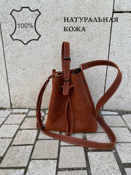 Сумка ведро кожаная женская натуральная кожа Крейзи хорс купить на OZON