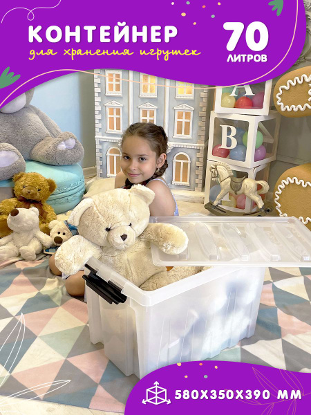 Характеристики Ящик для игрушек на колесиках, контейнер пластиковый для