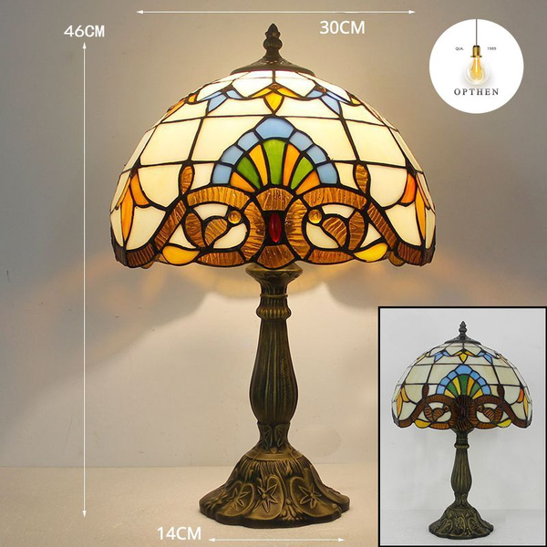 Лампа настольная из граненого цветного стекла и опалового стекла