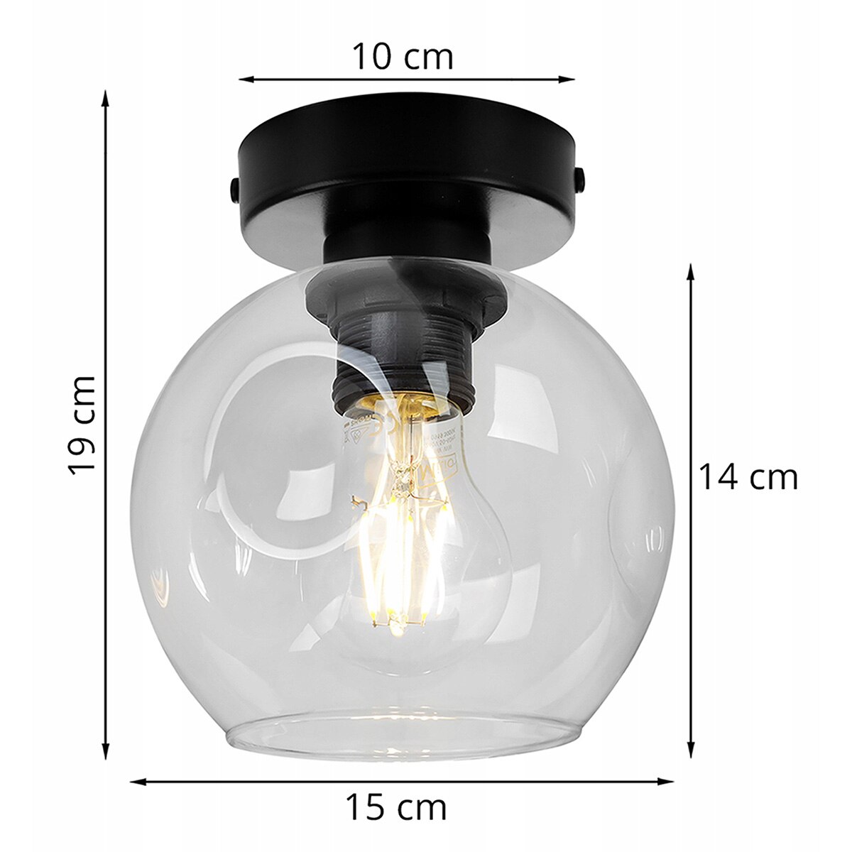 Модерен плафон, Light Home, Метал/Стъкло, E27, Черен