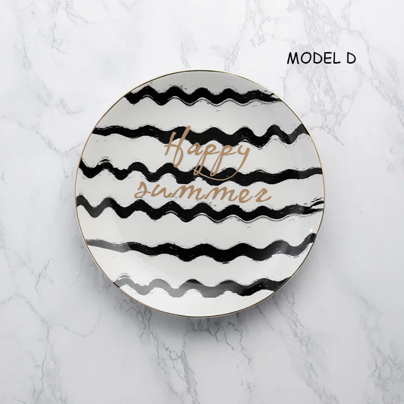 20 см золотой черный белый мраморная керамика тарелка набор посуды из
