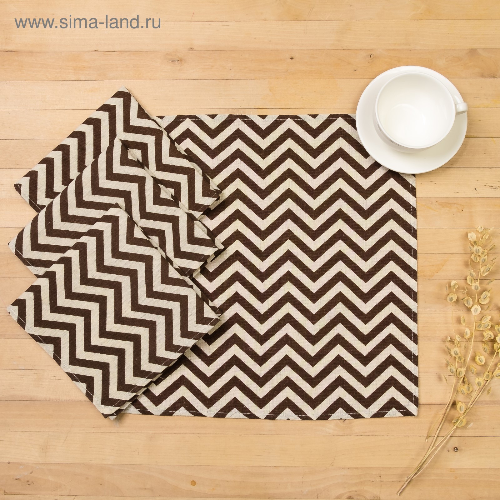 Набор салфеток Доляна 40х40см 4шт, Зигзаг коричневый, 100%пэ, рогожка