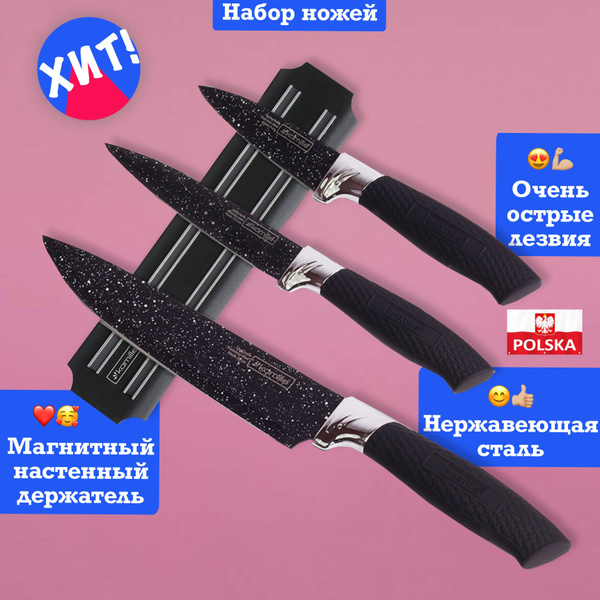 Набор кухонных ножей Kamille (ножи, 3 шт + магнитный держатель в