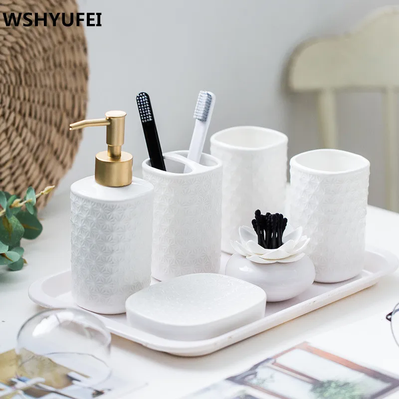 Рельефный Белый Европейский керамический набор аксессуаров для ванной