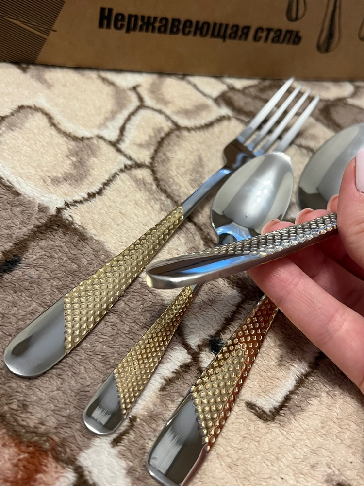 Набор столовых приборов 24 предм. золотой, зеркальный купить на OZON по