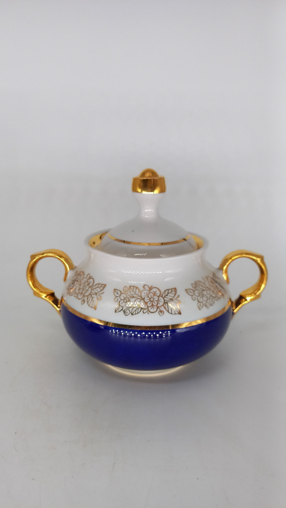 Винтажная советская фарфоровая сахарница в синих тонах, СССР купить по