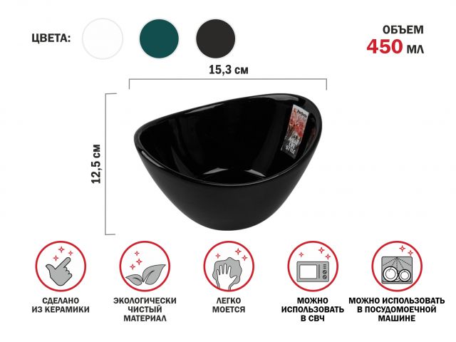 Салатник керамический, 15.3х12.5 см, серия ASIAN, черный, PERFECTO