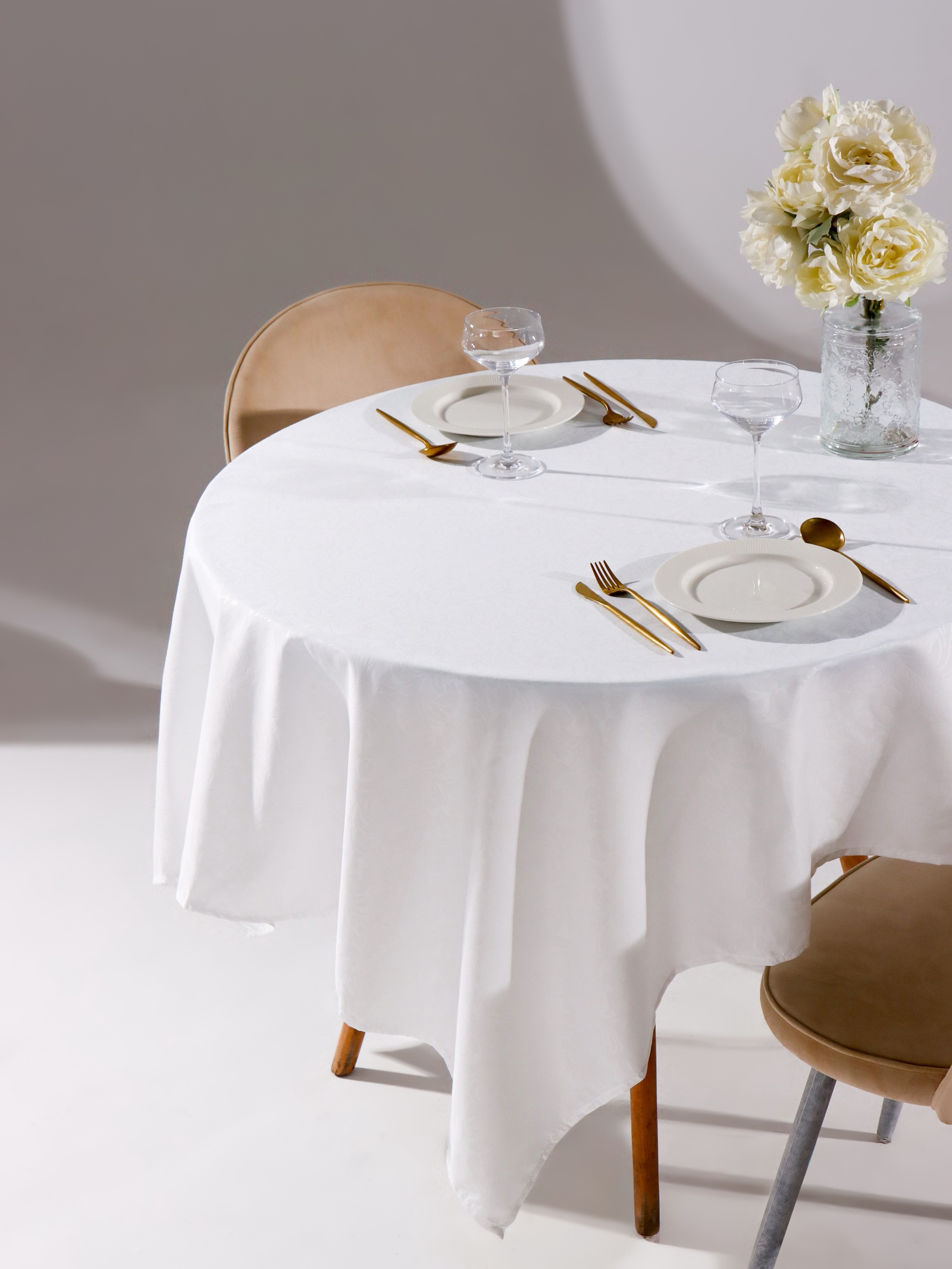 Скатерть DomoVita белая жаккард, рисунок МИКС (80% полиэстер, 20%